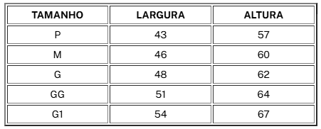 TABELA DE MEDIDAS